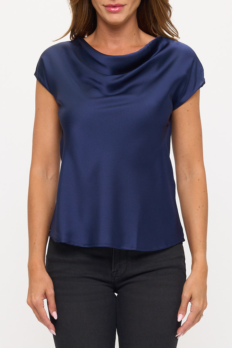 Solid Satin Top with Cowl Neck